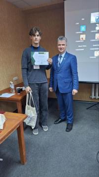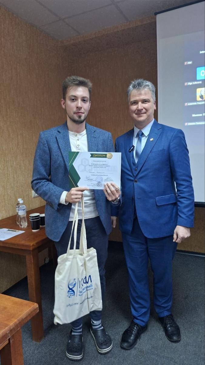 A special prize for the best applied presentation from the Chair of the Program Committee — Academician of NAS of Ukraine and Director of the IFMC, SSI "Institute for Single Crystals" of NASU, Prof. Valentyn Chebanov — was awarded to Yevhenii Dikhtiariuk, postgraduate student of the O.O. Chuiko Institute of Surface Chemistry NAS of Ukraine.