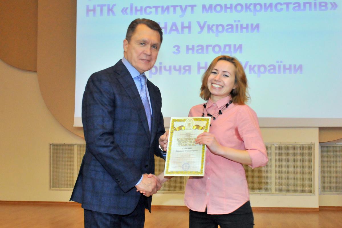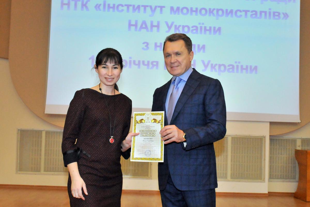Крім того, співробітники НТК "Інститут монокристалів" були відзначені ювілейними почесними грамотами НАН України, Почесними грамотами Президії НАН України та ЦК профспілки, а також Подяками НАН України.