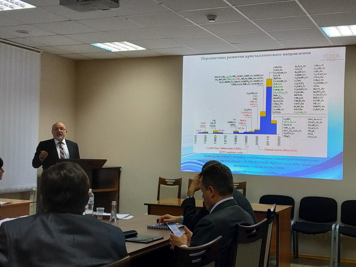 Доповідачі ознайомили присутніх із результатами наукової та науково-організаційної діяльності суб'єктів НТК "Інститут монокристалів" у 2018р. та планами на 2019р.
