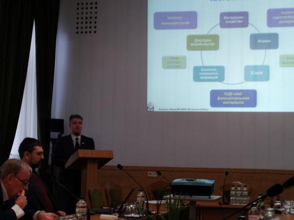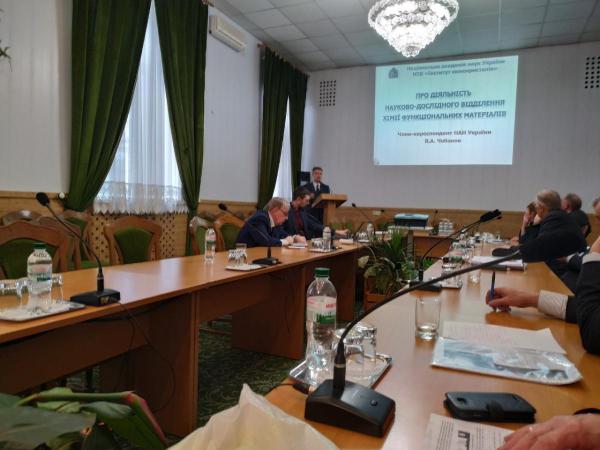 26 лютого перший заступник генерального директора, член-кореспондент НАН України Валентин Анатолійови Чебанов презентував наукові досягнення НДВ хімії фукнціональних матеріалів НТК "Інститут монокристалів" на загальних зборах відділення хімії НАН України.