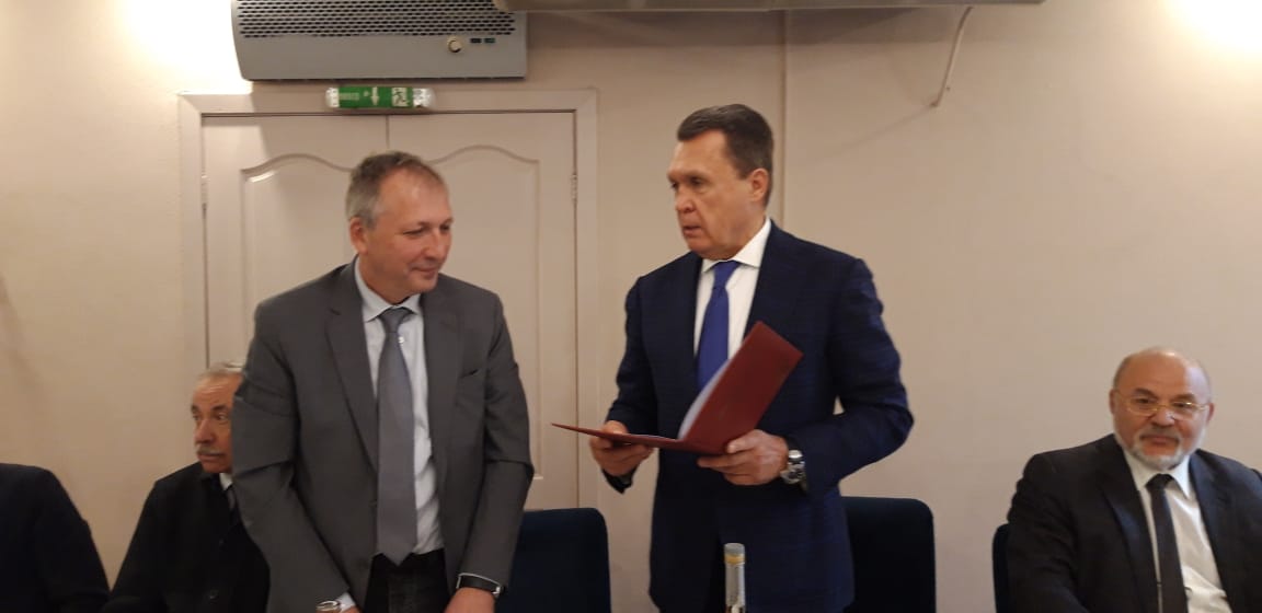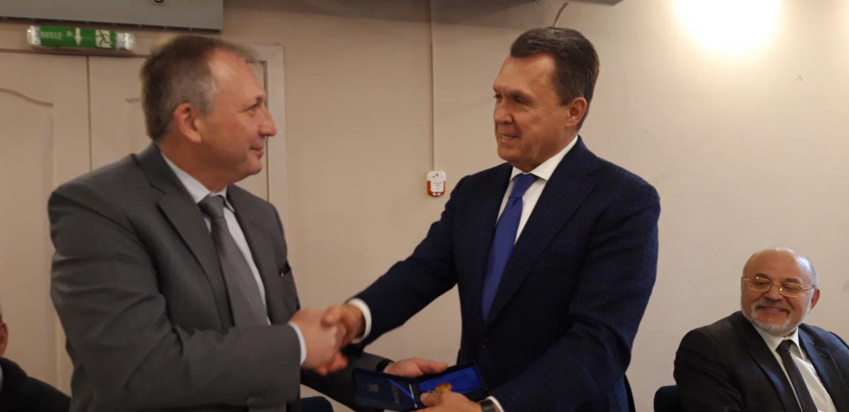 Голова Ради директорів В.П. Семиноженко вручив ювіляру Відзнаку НАН України за наукові досягнення