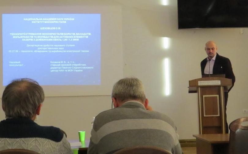 19 грудня у Національному університеті «Львівська політехніка» відбувся захист докторської дисертації Олексія Шеховцова "ТЕХНОЛОГІЇ ОТРИМАННЯ МОНОКРИСТАЛІВ БОРАТІВ, ВАНАДАТІВ, ВОЛЬФРАМАТІВ ТА МОЛІБДАТІВ ДЛЯ АКТИВНИХ ЕЛЕМЕНТІВ ЛАЗЕРІВ З ДОВЖИНАМИ ХВИЛЬ 1,06 І 1,5 МКМ"