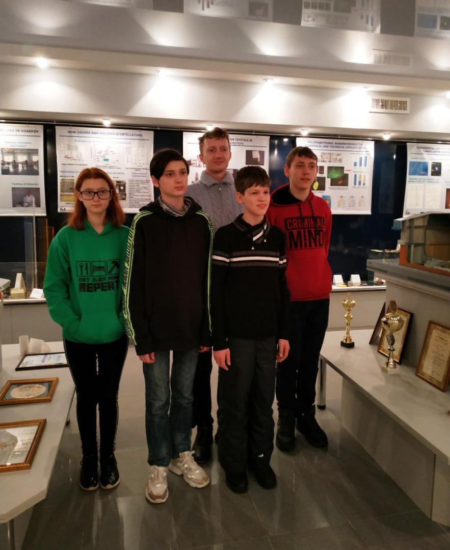 Нещодавно на виставці побувала команда юних фізиків - призерів IІ (очного) туру Всеукраїнської олімпіади з радіофізики для учнів 7-9 класів. Вихованці гуртка “Радіоелектроніка” Бердянського ЦДЮТ під керівництвом керівника, кандидата фізико-математичних наук Сергія Сімченко не вперше відвідують науково-технологічний комплекс «Інститут монокристалів» НАН України.