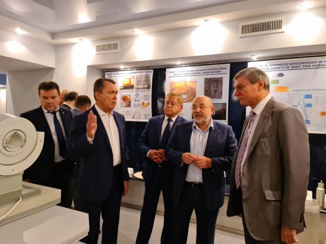Сьогодні в НТК «Інститут монокристалів» відбулася зустріч з представниками нового Міністерства стратегічних галузей промисловості: керівником - віце-прем'єр-міністром - міністром з питань стратегічних галузей промисловості О.С. УРУСЬКИМ, його заступником - В.А. Немилостивим, а також главою УСПП А.К. Кінахом.