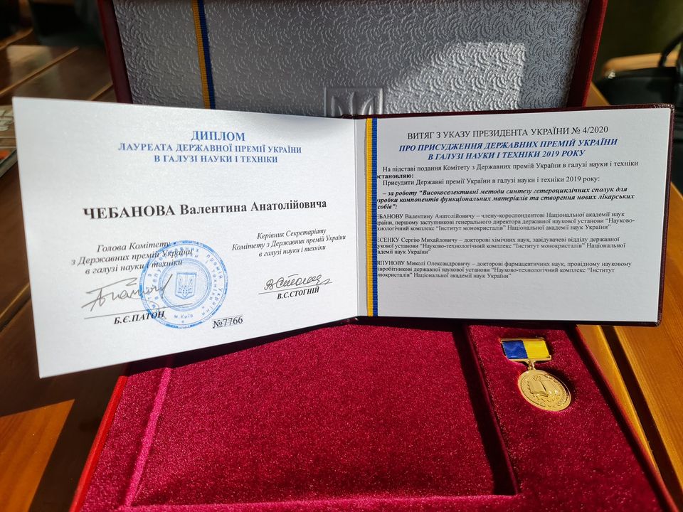 Державну премію України за роботу «Високоселективні методи синтезу гетероциклічних сполук для розробки компонентів функціональних матеріалів та створення нових лікарських засобів» отримали наші вчені: