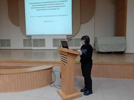 1.Доповідь Л.Н.Трефілової за матеріалами докторської дисертації: "Закономірності радіаційного створення короткоживучих центрів забарвлення і люмінесценції в сцинтиляційних кристалах на основі CsI"