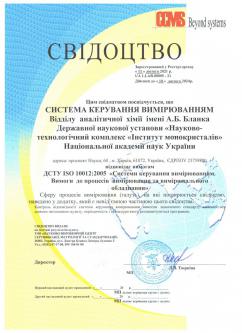 Відділ аналітичної хімії ім. А.Б.Бланка отримав Свідоцтво на здійснення досліджень згідно вимог ДСТУ ISO 10012.