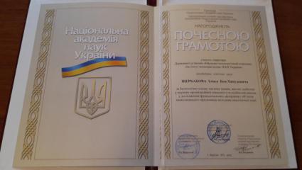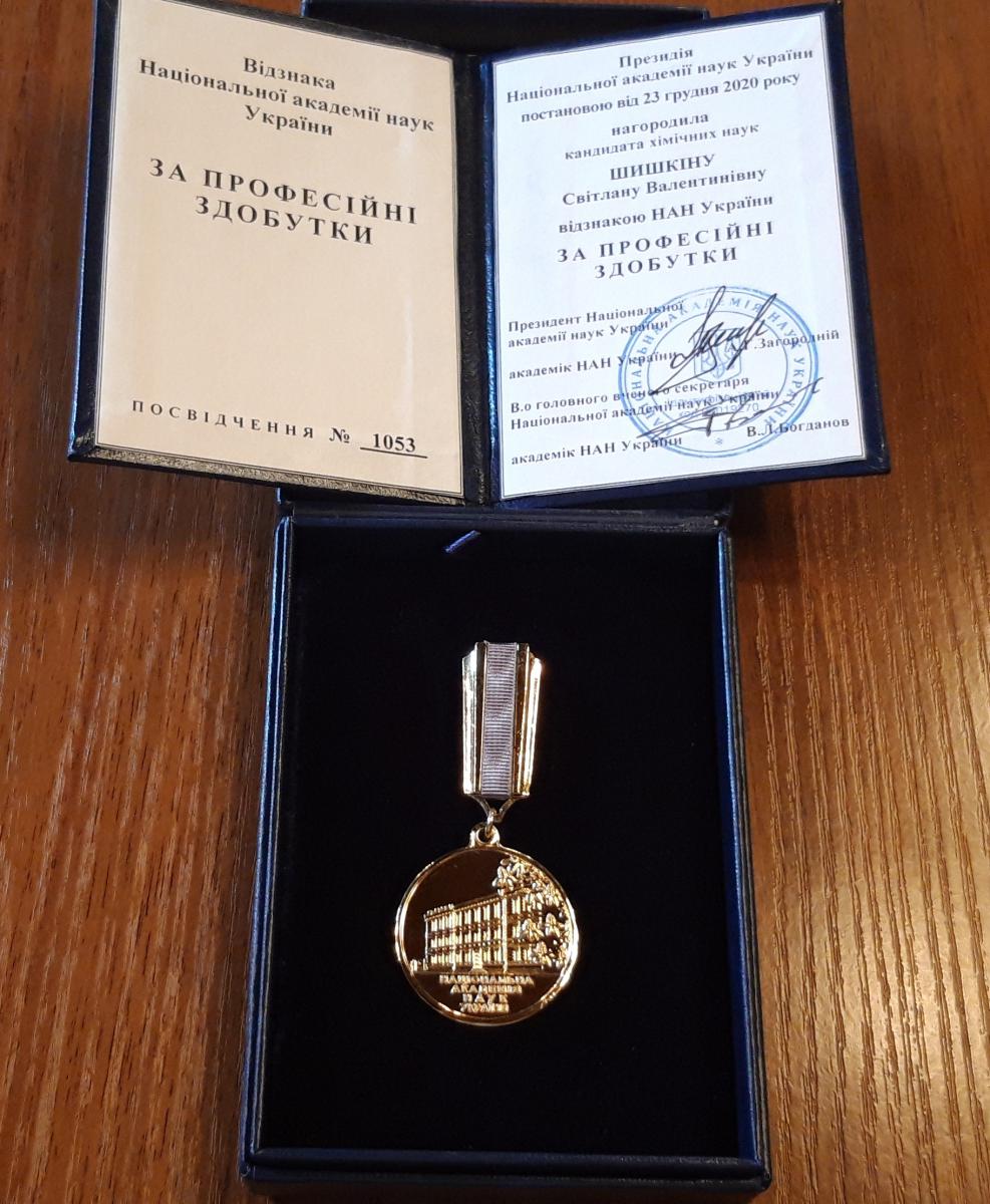 Сьогодні на засіданні хімічної секції вченої Ради Науково-технологічного комплексу "Інститут монокристалів" НАН України перший заступник генерального директора Валентин Чебанов вручив відзнаку НАН України Світлані Шишкіній та грамоти НАН України Іліасу Щербакову та Наталії Чорній.