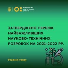 Уряд затвердив перелік найважливіших науково-технічних розробок на 2021-2022 роки