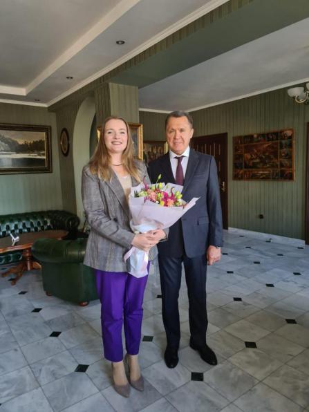 На фото наш головний юрисконсульт - Анастасія Катріч з Генеральним директором НТК академіком НАН України Володимиром Семиноженко.