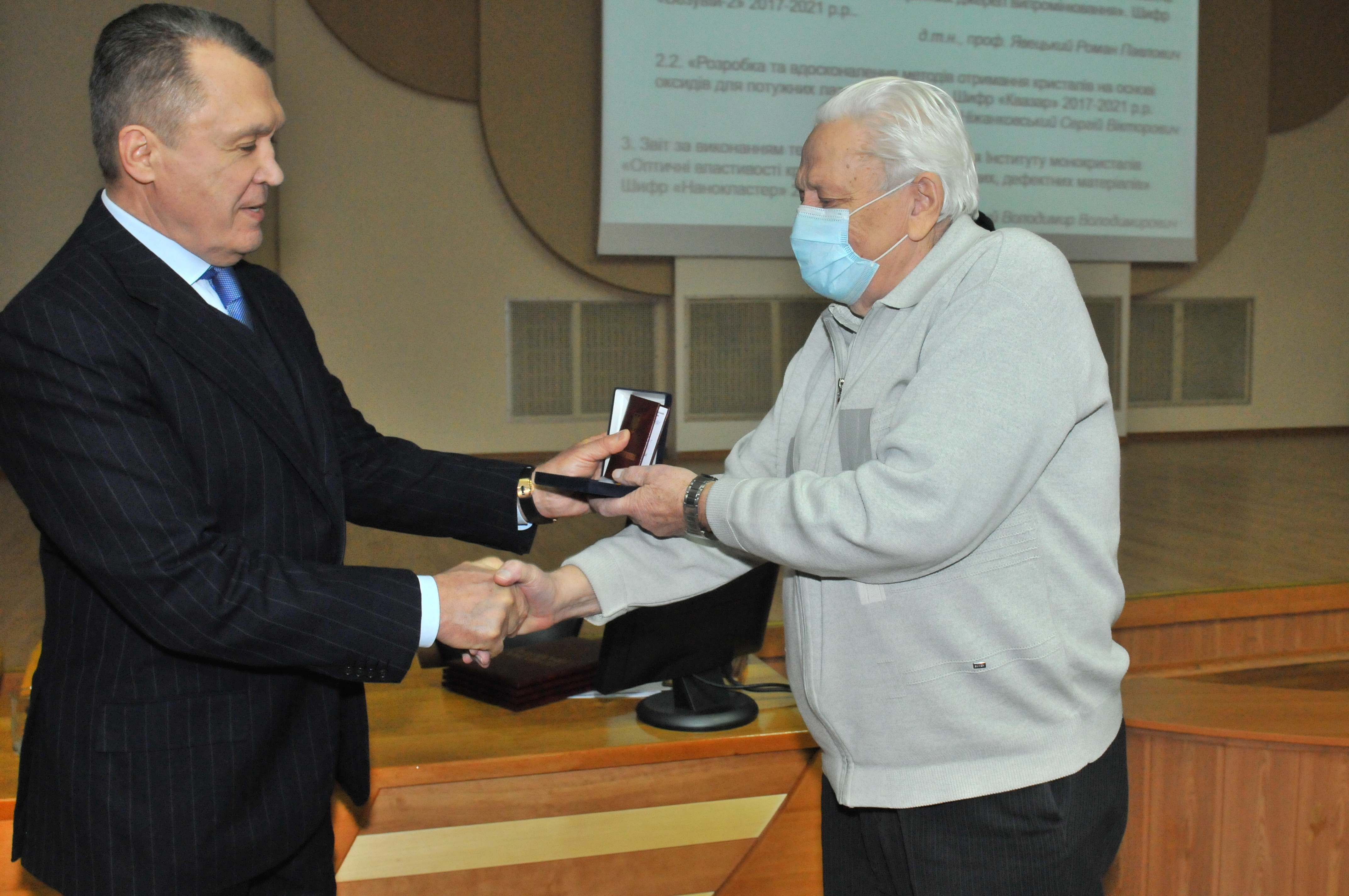 Сьогодні на засіданні Вченої ради Науково-технологічного комплексу «Інститут монокристалів» генеральний директор академік НАН України Володимир СЕМИНОЖЕНКО вручив нагороди Української федерації вчених та Президії НАН України нашим співробітникам.