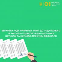 Внесення змін до Податкового та Митного кодексів сприятиме розвитку наукової та науково-технічної діяльності в Україні.