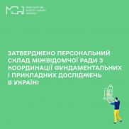 30 січня 2023 року спільним наказом Міністерства освіти і науки України та Національної академії наук України № 94/61 затверджено персональний склад Міжвідомчої ради з координації фундаментальних і прикладних досліджень в Україні.