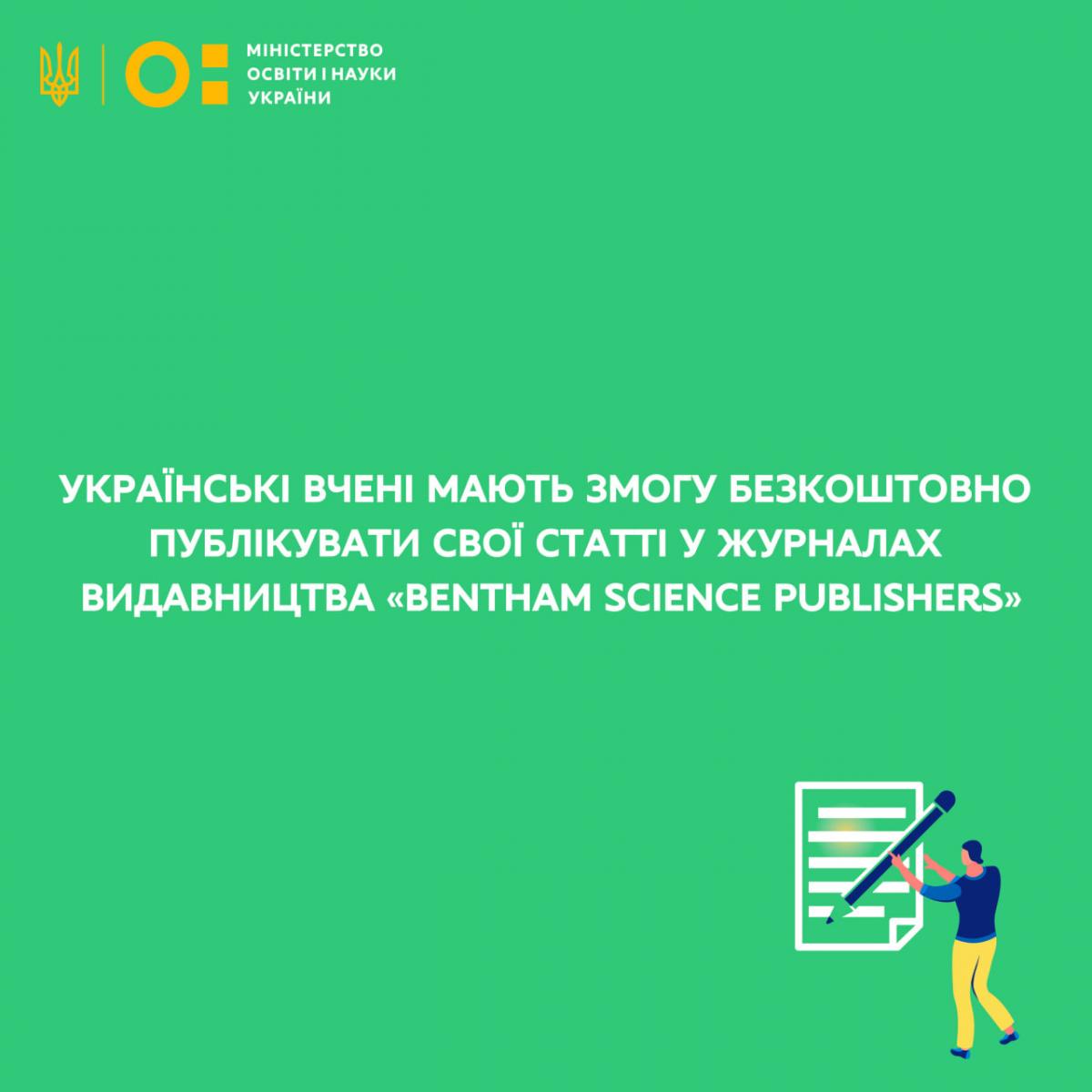 Видавництво «Bentham Science Publishers», яке є видавцем наукової літератури в галузях фармакології та медицини, технічних та суспільних наук, скасувало для українських дослідників плату за публікації в усіх своїх журналах до кінця 2023 року. Про це повідомляється на сайті Державної науково-технічної бібліотеки України.
