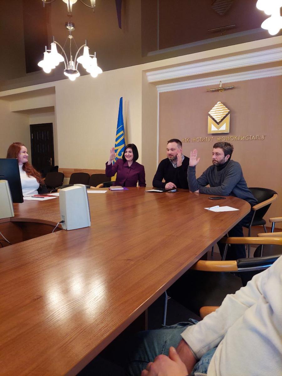 28.02.2024 на засіданні разової спеціалізованої вченої ради в Інституті монокристалів НАН України відбувся захист аспіранта Арсенія Тимошенка на здобуття наукового ступеня доктора філософії дисертаційної роботи "Закономірності формування та структурно-фазовий стан високолегованої оптичної кераміки YAG:Sm3+" за спеціальністю 132 – «Матеріалознавство». Науковий керівник: Роман Явецький, доктор технічних наук, професор.