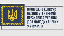 Оголошено конкурс на здобуття Премій Президента України для молодих вчених у 2024 році. Прийом матеріалів триває до 20 травня 2024 року