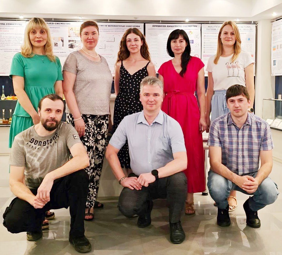 На фото команда переможців проєкту: к.х.н. Яна Сахно, к.х.н. Наталія Пінчукова, аспірантка Дар'я Мяснікова, к.х.н. Ольга Колосова, к.х.н. Олеся Кулик (верхній ряд, зліва направо), к.х.н. Олександр Збруєв, чл.-кор. НАН України Валентин Чебанов, аспірант Ростислав Свояков (нижній ряд, зліва направо)