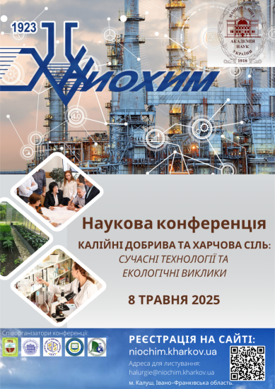 Анонс. 8 травня 2025р. відбудеться наукова конференція "Калійні добрива та харчова сіль: сучасні технології та екологічні виклики"
