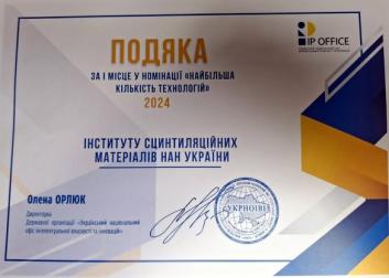 Інститут сцинтиляційних матеріалів НАН України — переможець у номінації «Найбільша кількість технологій»