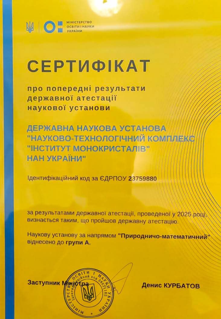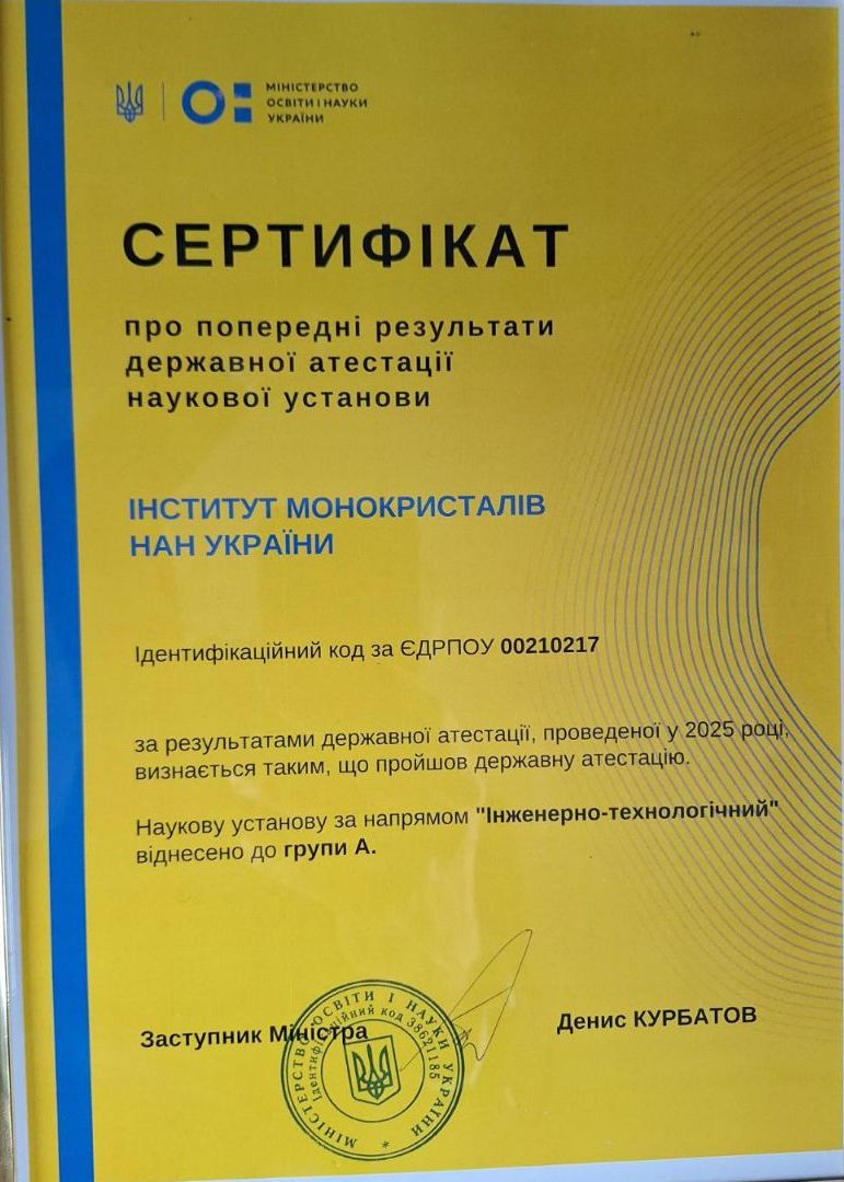 Результати державної атестації: три інститути НТК «Інститут монокристалів» отримали категорію «А»