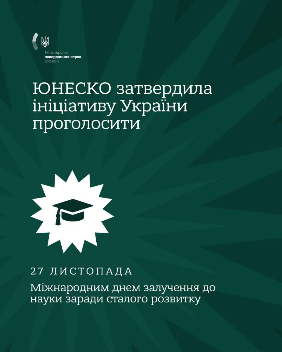 На 43-й сесії Генеральної конференції ЮНЕСКО у Самарканді (Узбекистан) ухвалено резолюцію про проголошення Міжнародного дня залучення до науки заради сталого розвитку.
