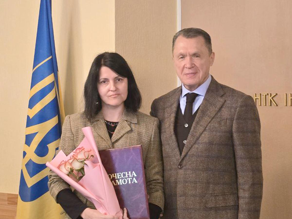 - • Почесну грамоту НАН України ученому-консультанту НТК, кандидатці хімічних наук Інні Єрмоленко
