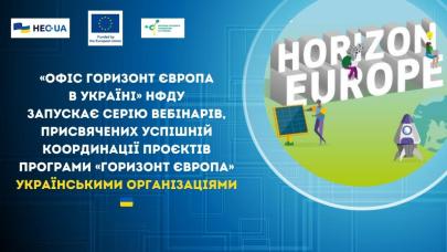 Анонс. Серія вебінарів, присвячених успішній координації проєктів Програми «Горизонт Європа» українськими організаціями, від «Офіс Горизонт Європа в Україні» НФДУ.