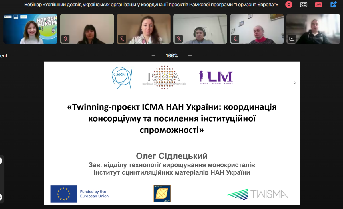 Під час заходу було представлено два успішні кейси координації міжнародних проєктів українськими установами. Один із них — проєкт TWISMA, що виконується науковцями Інституту сцинтиляційних матеріалів НАН України нашого Комплексу та координується доктором технічних наук, професором Олегом Сідлецьким.
