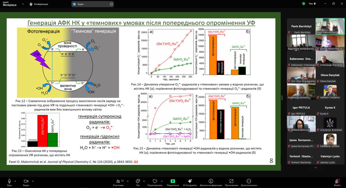 Доповідь була присвячена сучасним підходам до керування редокс-властивостями нанокристалічних матеріалів — напряму, що динамічно розвивається та має значний науковий і прикладний потенціал. Представлені результати засвідчили глибину наукового аналізу та високий рівень експериментальних досліджень, викликали жвавий інтерес і стали підґрунтям для змістовної фахової дискусії.