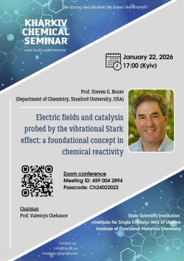 Після невеликої перерви Харківський хімічний семінар (Kharkiv Chemical Seminar), започаткований Інститутом хімії функціональних матеріалів НТК «Інститут монокристалів» НАН України продовжує свою роботу у новому році та знову запрошує всіх зацікавлених до спілкування та наукових дискусій на черговій лекції, яка відбудеться 22 січня 2026 року о 17:00. Захід проходитиме онлайн на платформі Zoom.