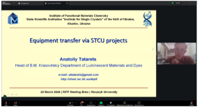 Особливу увагу учасників привернув виступ завідувача відділу люмінесцентних матеріалів та барвників імені Б.М. Красовицького, к.х.н., с.д. Анатолія Татарця. У своїй доповіді "Equipment transfer via STCU projects" він не лише представив тему, а й поділився цінним практичним досвідом про організацію трансферу наукового обладнання - системи FPLC (Fast Protein Liquid Chromatography, Pharmacia Biotech)- з Чехії в Україну, зокрема до Інституту хімії функціональних матеріалів нашого Комплексу.